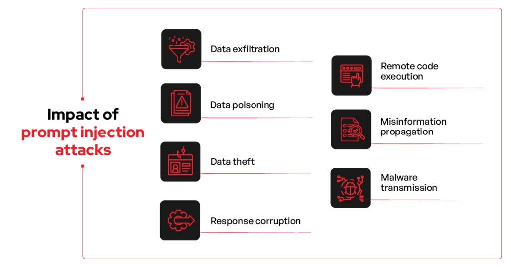 Prompt injection attacks can cause far-reaching damage to organisations relying on AI systems. The consequences range from data breaches to operational and reputational harm.